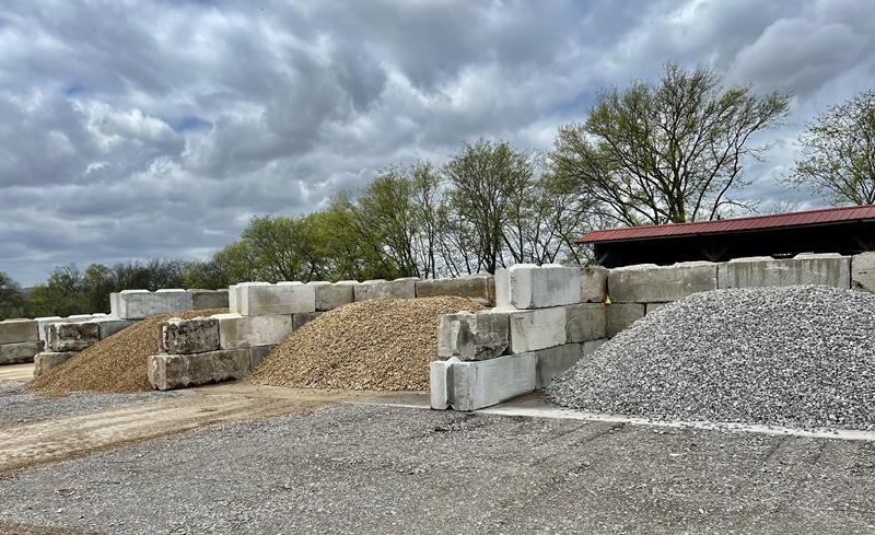 We stock lumber, siding, metal roofing, concrete products, screws, nails, caulk, blades, drill bits, and more.